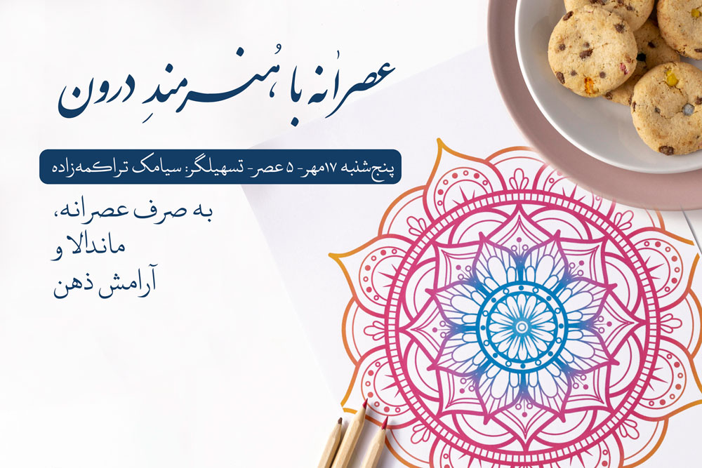 «نخستین نشست عصرانه با هنرمند درون با موضوع ماندالا و آرامش ذهن در مرکز مشاوره رائین برگزار میشود. تجربهای متفاوت از هنر، ذهنآگاهی و دورهمی دوستانه. ظرفیت محدود!»